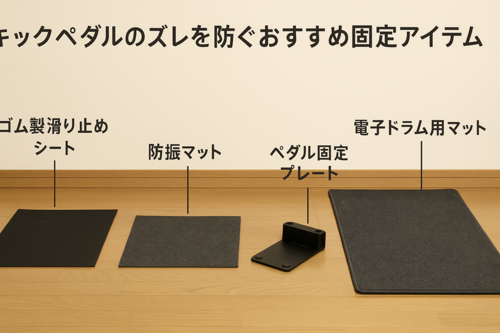 電子ドラムを練習していると、キックペダルが少しずつ前にズレてしまい、演奏に集中できなくなることは多くの人が経験します。特に自宅練習では床やマットの環境によって滑りやすくなり、思った通りに踏めずストレスを感じることもあります。本記事では、... -