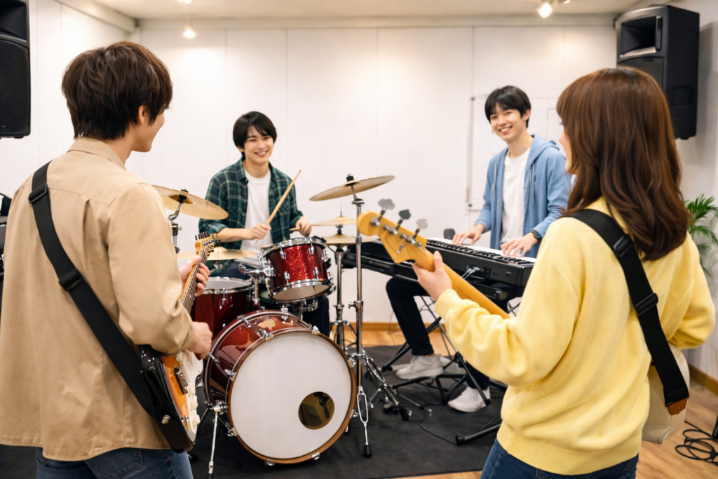 バンドは個人戦ではなく、役割が重なって完成するものです。この感覚がわかると、練習の質も自然に上がります。