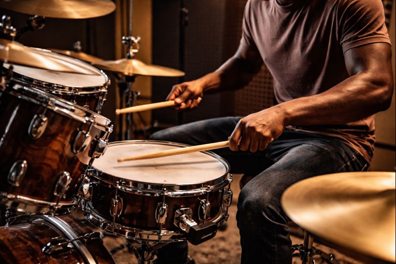複雑なフレーズよりも、8ビートのような基本パターンでポケットを意識することが効果的です。キックとスネアの位置関係を安定させ、毎回同じ感覚で叩けているかを確認します。音数が少ない分、タイムのズレが顕著に表れるため、ポケット感のチェックに適しています。