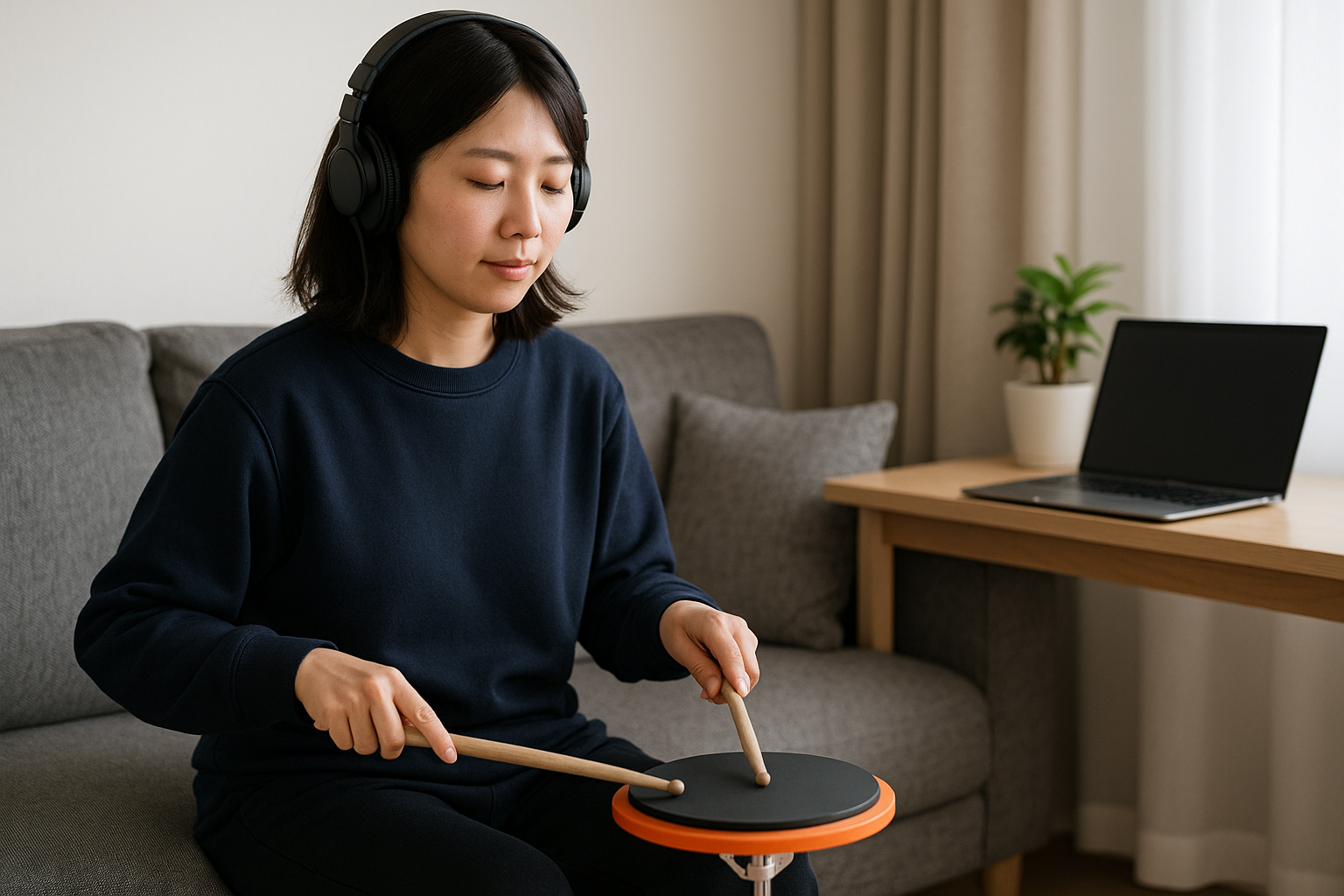 練習パッドはスペースを取らないため、自宅の狭い場所でも十分に応用トレーニングができます。片手だけでの細かいストローク、アクセント練習、柔軟性を高めるグリップ練習など、多彩なメニューが取り組みやすいのが魅力です。限られた時間でも集中して練習すれば、しっかりとした成果を得られる環境が整います。