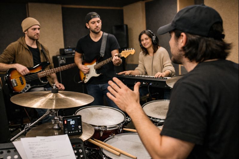 具体的には、演奏後に「今のグルーヴはどう感じましたか」「少し後ろに重心を置いている意識がありましたが、違和感はありましたか」といった、感想を引き出す形で会話を始めると建設的です。ベースやギターが感じているリズムの位置を言語化してもらうことで、ズレの原因がテンポなのか、音価の置き方なのかが明確になります。