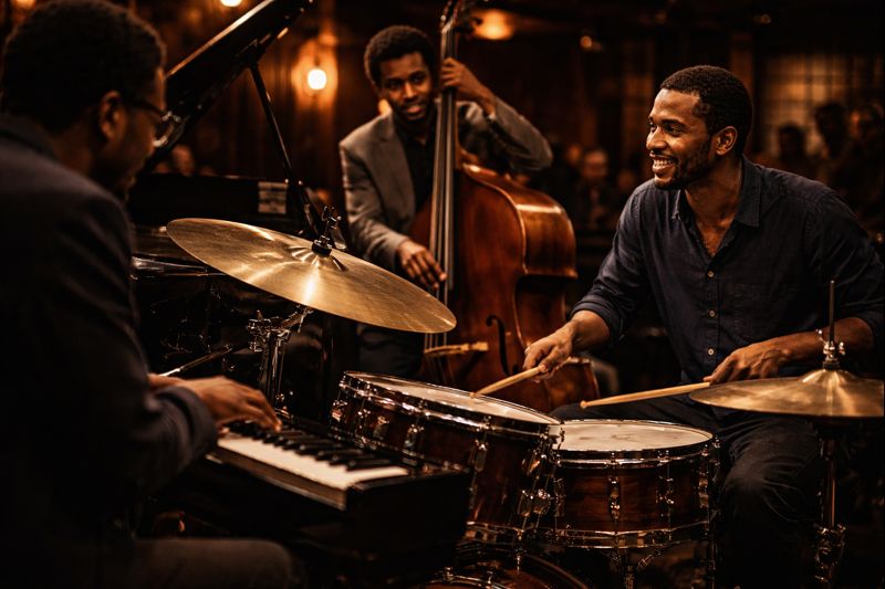 マーカス・ギルモアにとって、ジャズは特別なものとして遠くに存在していたわけではありません。家庭という日常の場において、演奏や音楽の話題が自然に存在していたことが、ジャズとの距離を縮めてきました。いつ音楽に触れるかを意識する必要がない環境で育ったことで、ジャズは学ぶ対象というよりも、生活の一部として体に染み込んでいったと考えられます。この距離感が、演奏における自然さや無理のなさにつながっています。