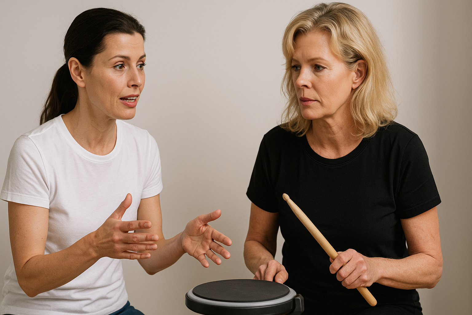 初心者がまず身につけるべきは、正しいスティックの握り方と姿勢です。スティックは力を入れすぎず、親指と人差し指を軸に軽く挟むように持つことで自然な動きを引き出せます。また、背筋を伸ばし、肩をリラックスさせた姿勢で叩くことが、スムーズなストロークの基盤になります。正しい姿勢を習得することで余計な力みが減り、長時間の練習でも疲れにくくなります。