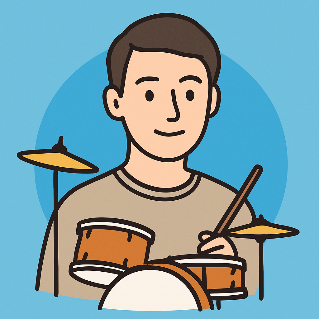 29歳でドラムを始め、現在まで23年間にわたり練習を継続しています。